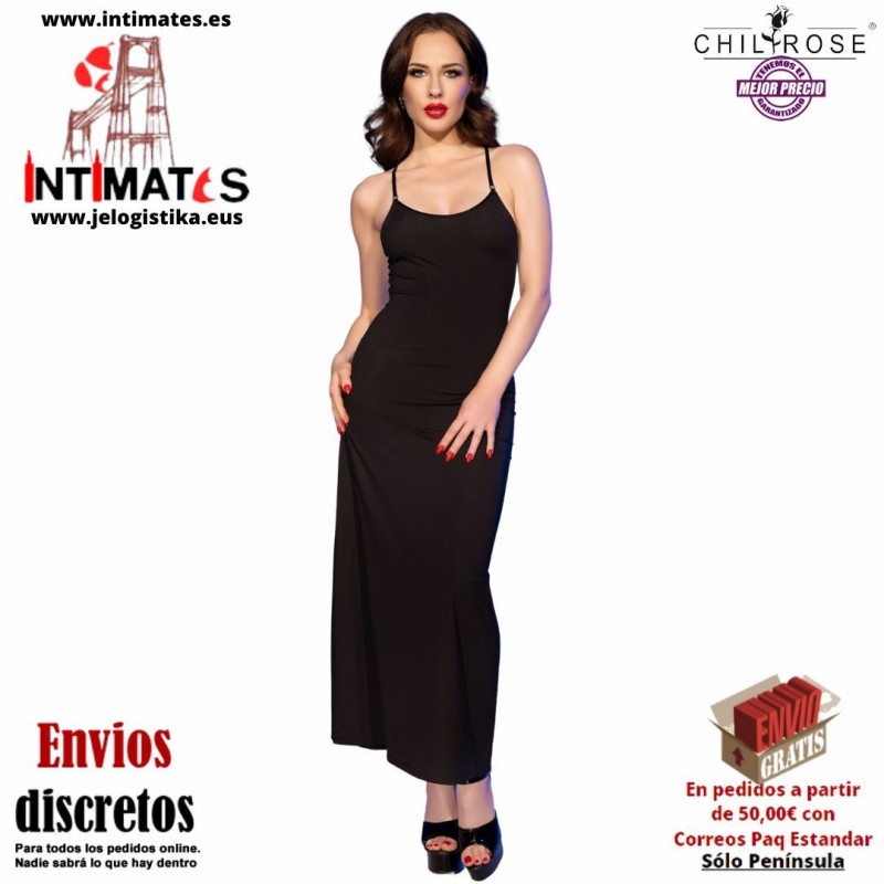 Descubre tu lado más audaz con el CR 4705, un vestido largo muy sensual en color negro que combina estilo y atrevimiento.