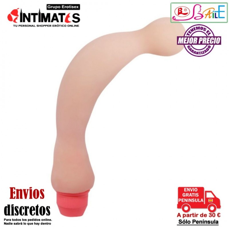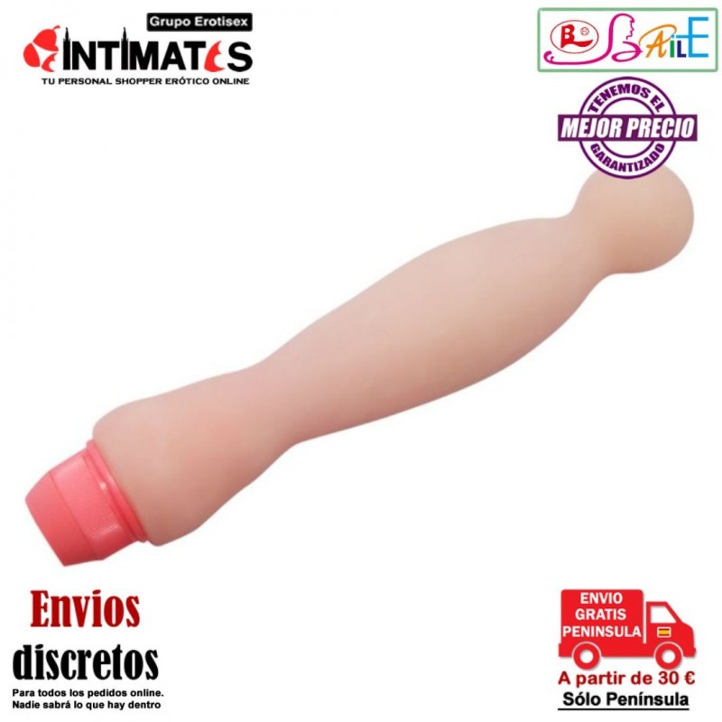 Este vibrador está hecho de material que imita la piel y cuenta con un vibrador y una cabeza bien moldeada para estimular el punto G y la próstata.