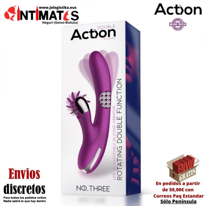 No. Three · Vibrador rotador con bolas giratorias 360º y rueda estimuladora · Action