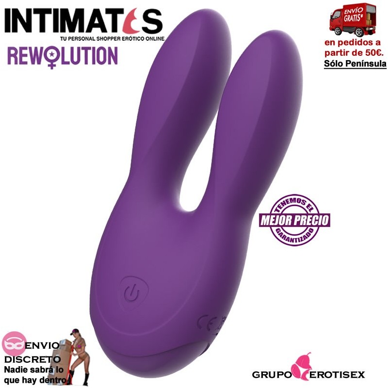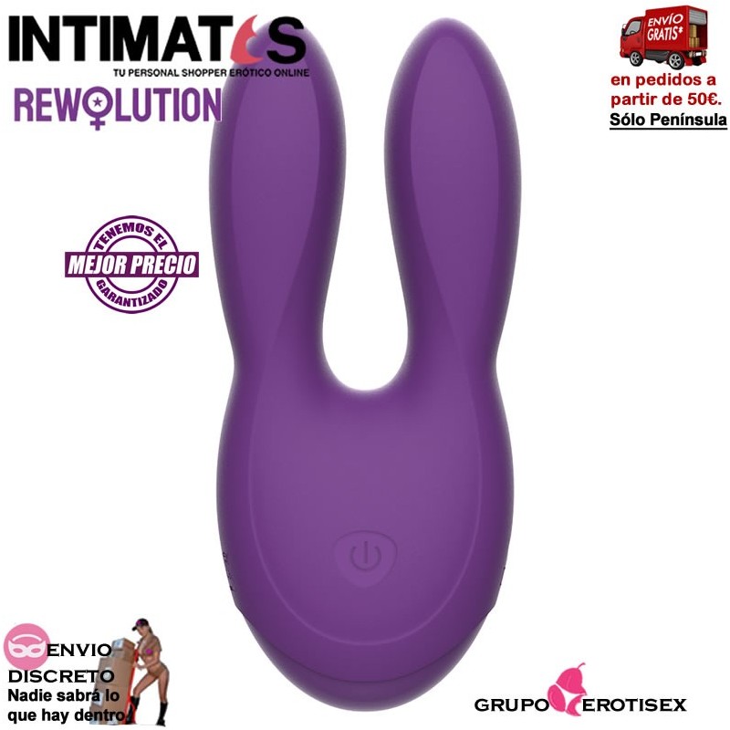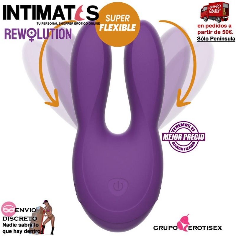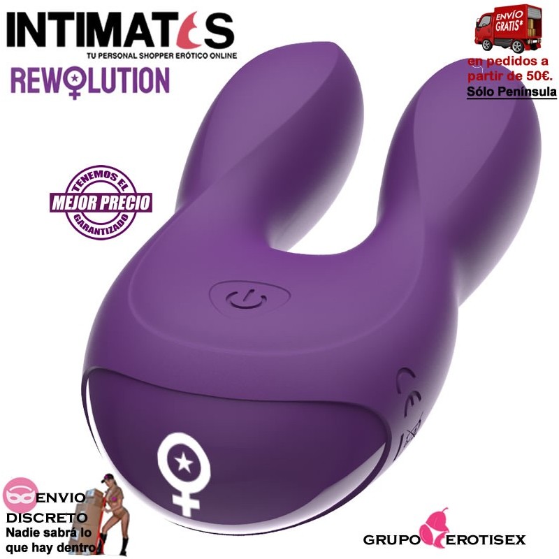 Dos puntas flexibles con revolucionarios motores independientes hacen que el vibrador de clítoris recargable Rewobit sea imprescindible.