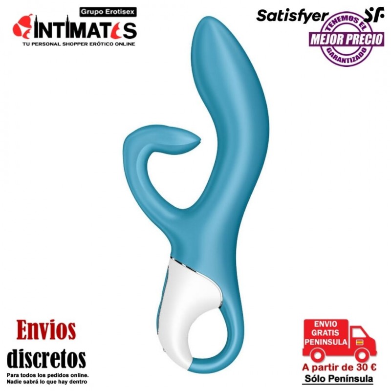 Embrace Me de Satisfyer es un vibrador de conejo que puntúa con 2 potentes motores que suministran potentes vibraciones a tu punto G y clítoris.