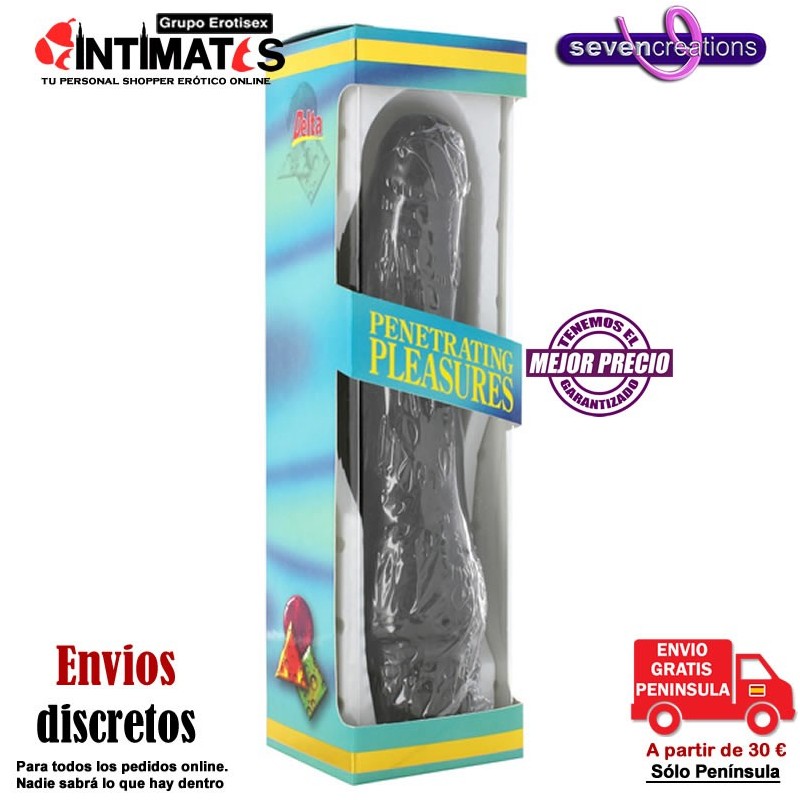 Vinyl P-Shape es un vibrador de velocidad múltiple, con forma de pene realístico de 23 cm fabricado en vinilo negro con tacto totalmente humano.