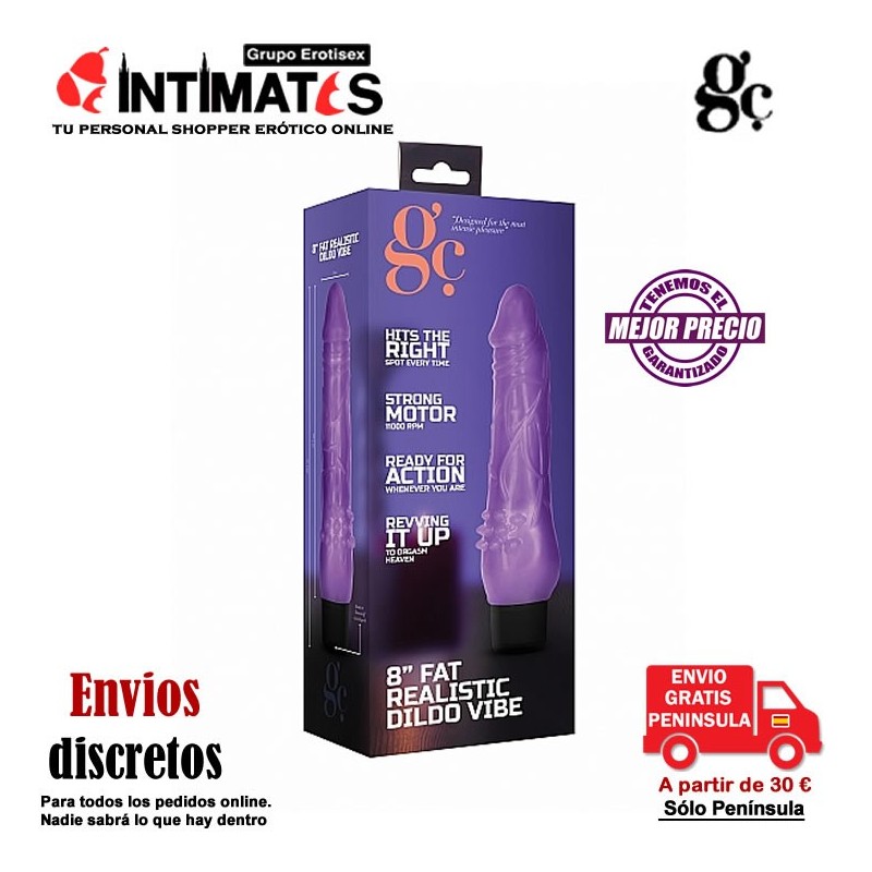 ¡El 8" Fat Realistic Dildo Vibe de GC se revoluciona hasta unas asombrosas 11.000 RPM y con su mando fácil de usar con múltiples velocidades en la base, tendrás un orgasmo alucinante en poco tiempo!